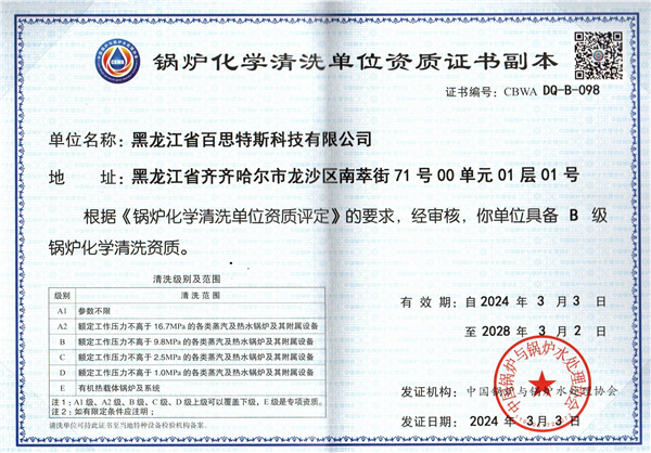 锅炉化学清洗单位资质证书