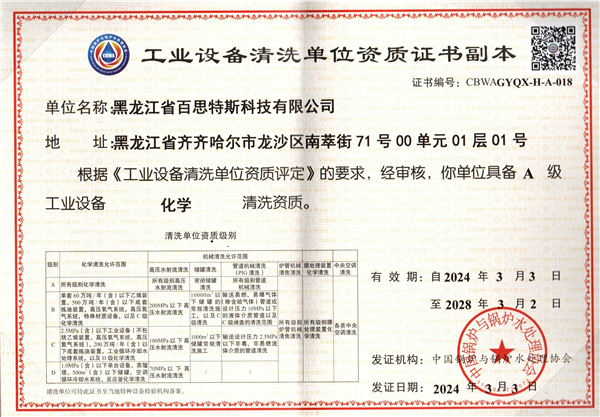 工业设备化学清洗单位资质证书