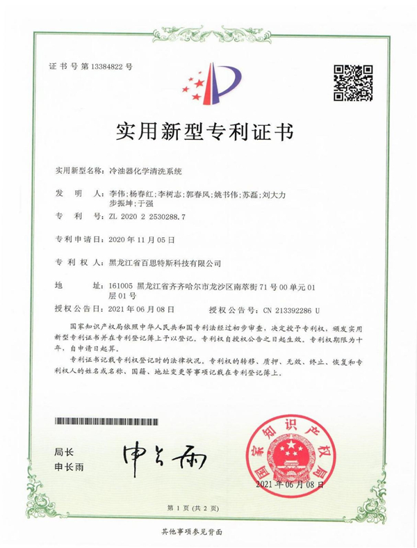 冷油器化学清洗系统专利